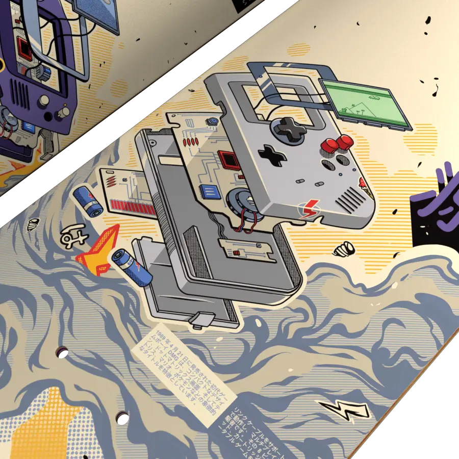 Introducing the “OG” Skateboard Deck – a nostalgic fusion of gaming history and skateboarding innovation. Crafted from 7-ply maple for durability and that perfect pop, this 8.25″ deck pays homage to the classic DMG game console. Its laser-etched logos add a touch of retro charm while you shred the streets with style. Get ready to roll with the “OG” and relive the golden age of gaming in every kickflip and grind.